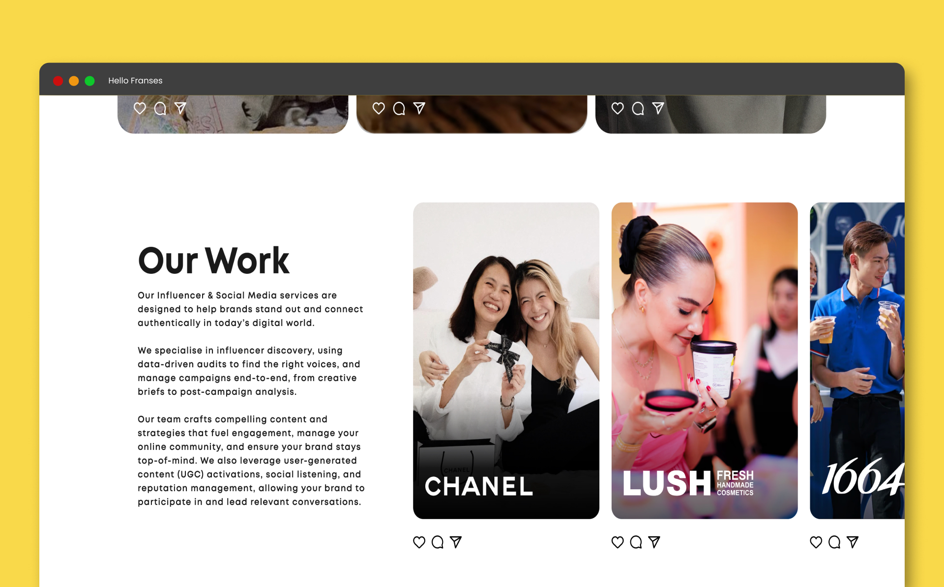 A new, modernised website for Hello Franses, an international PR agency specialising in influencer management