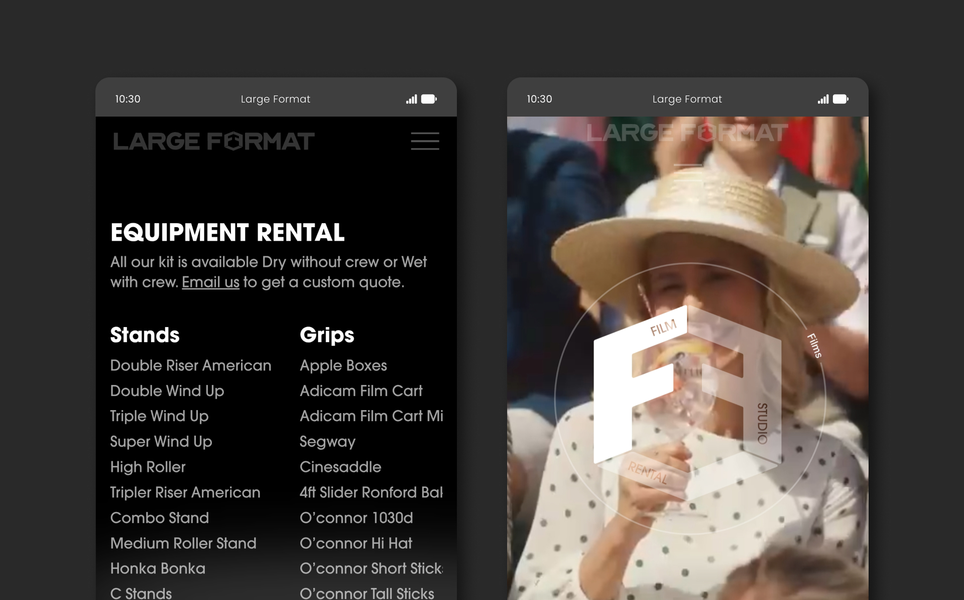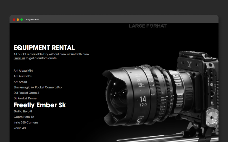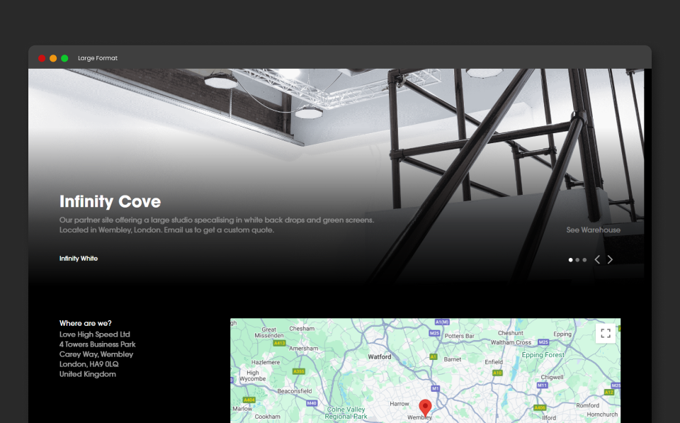 A technical and bespoke website for a London film studio offering rental services and contracting for film shoots.